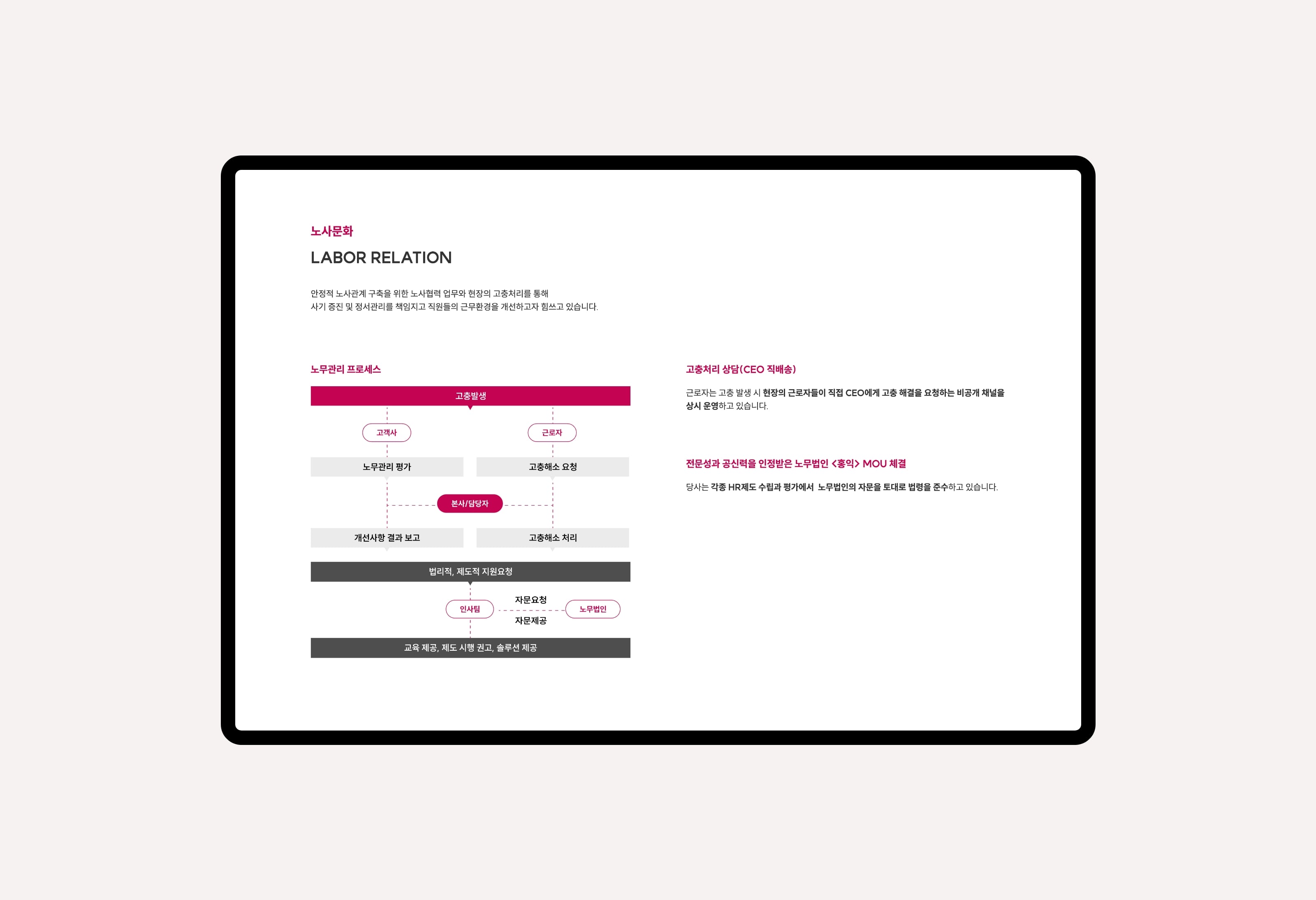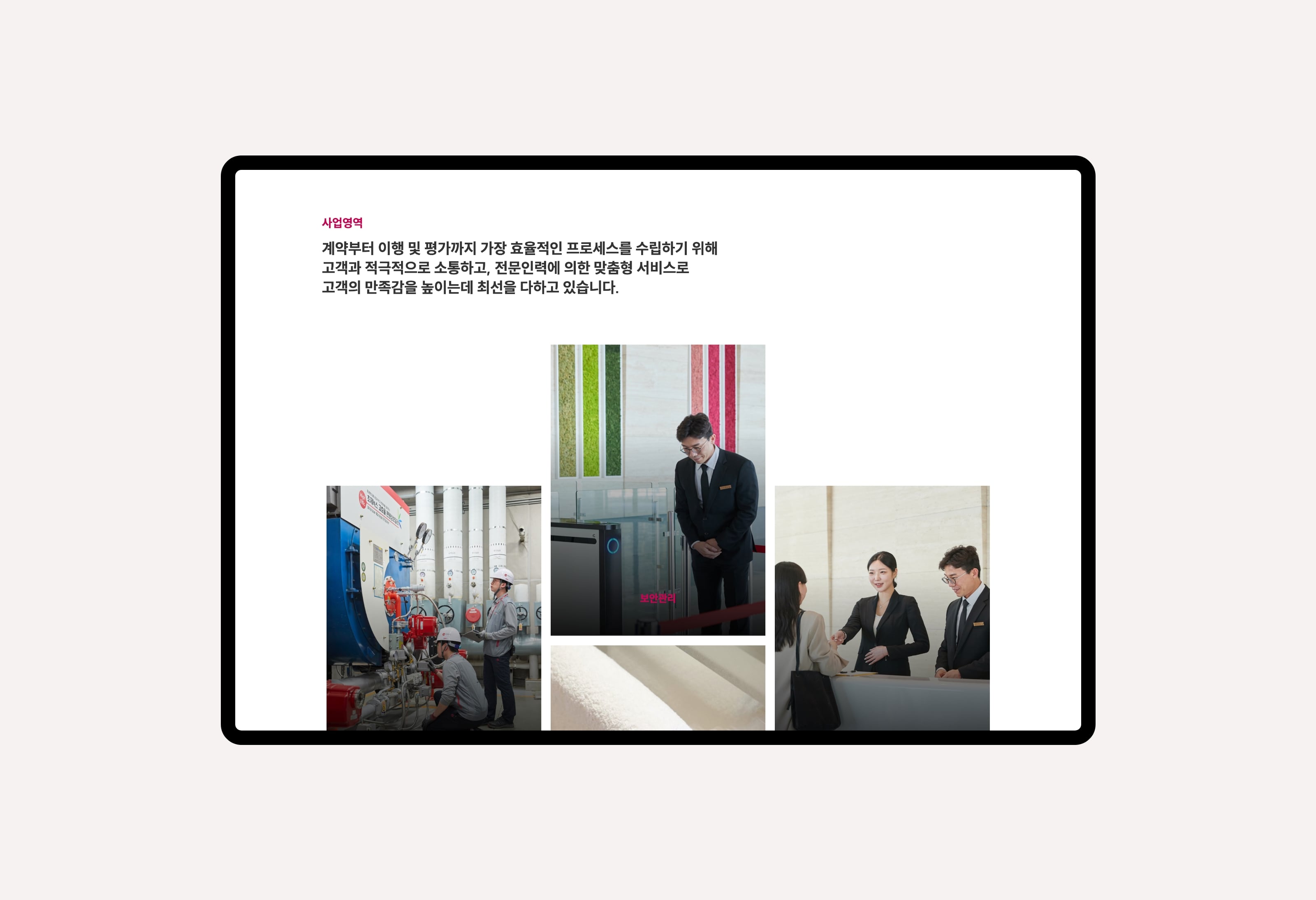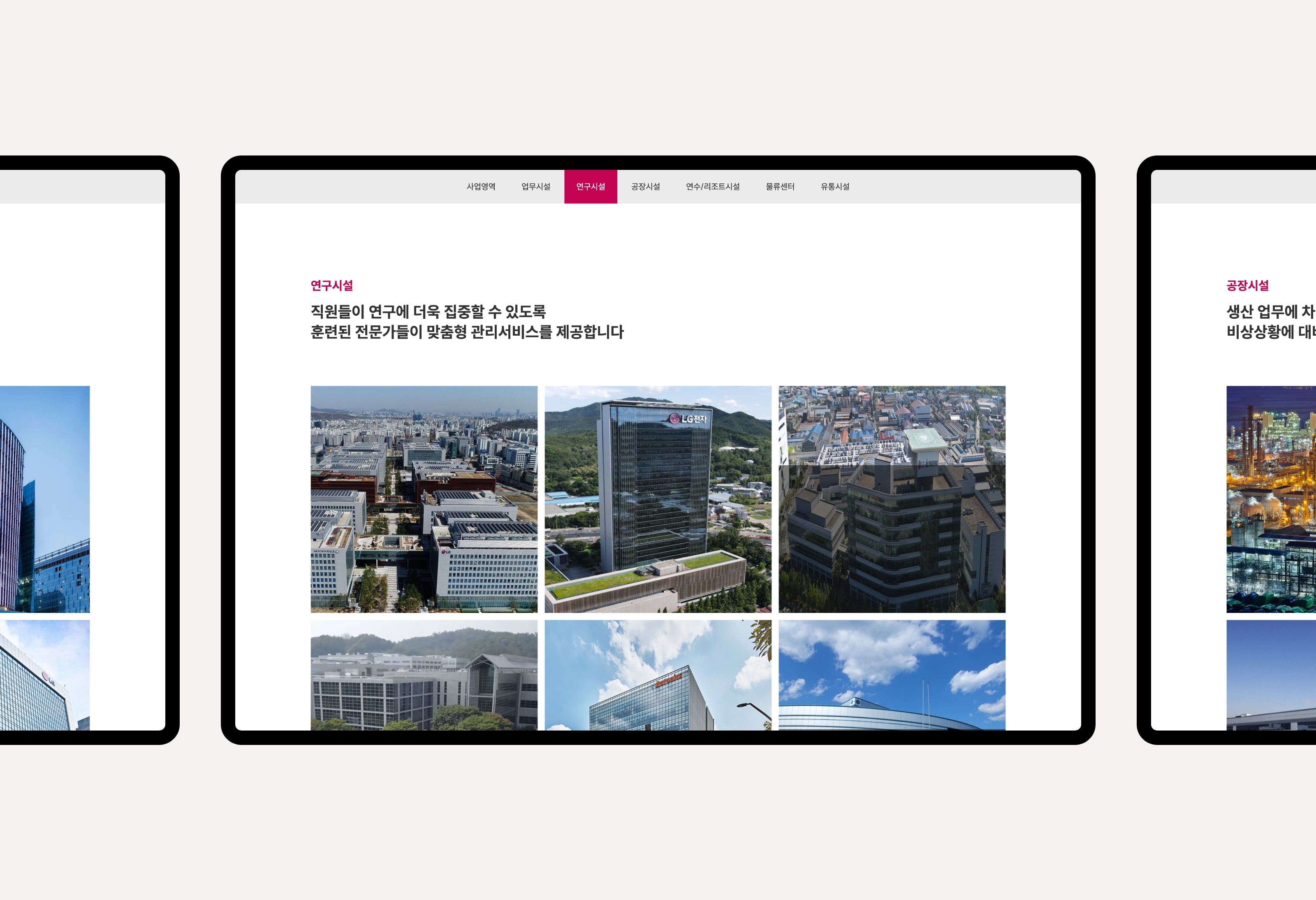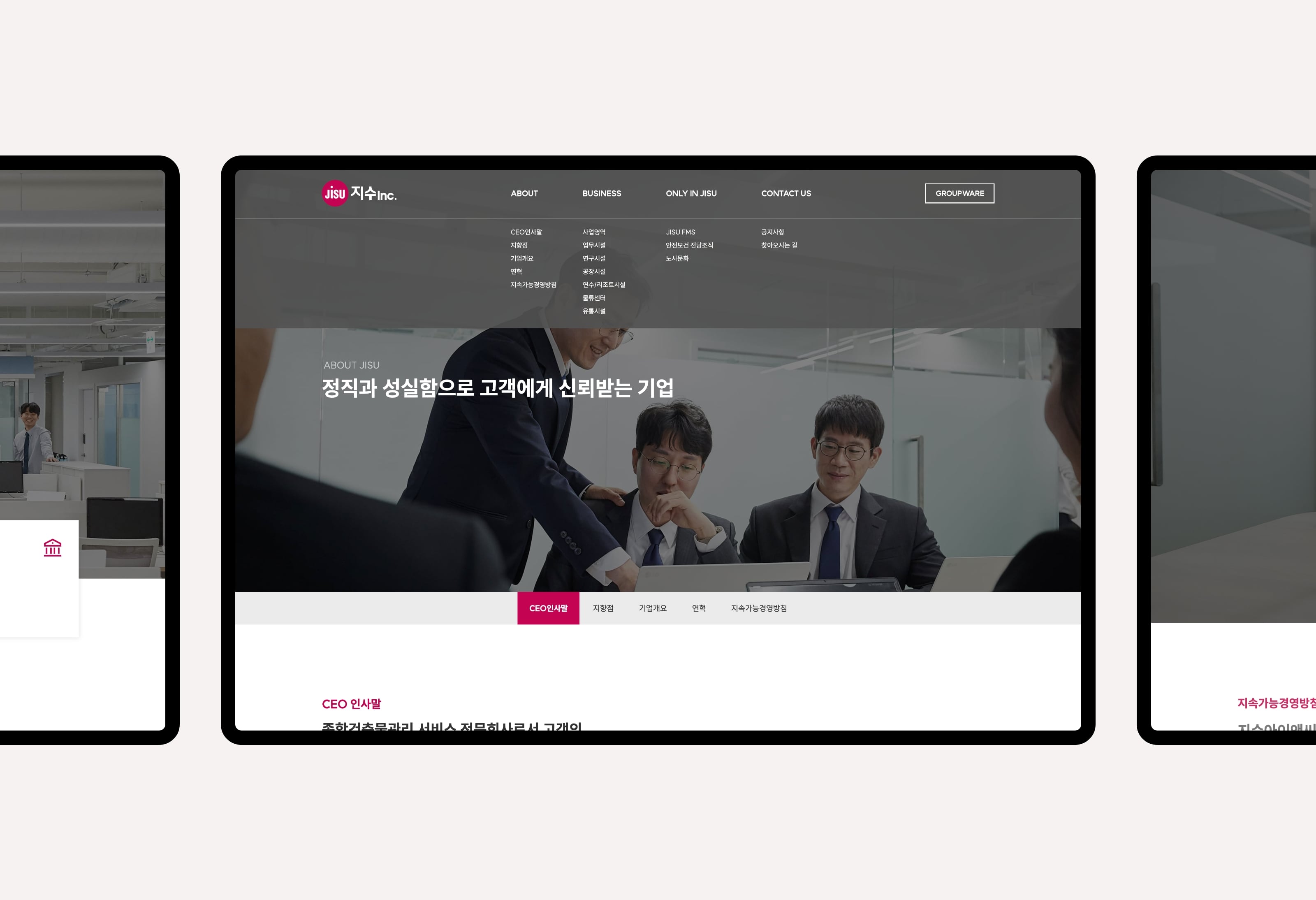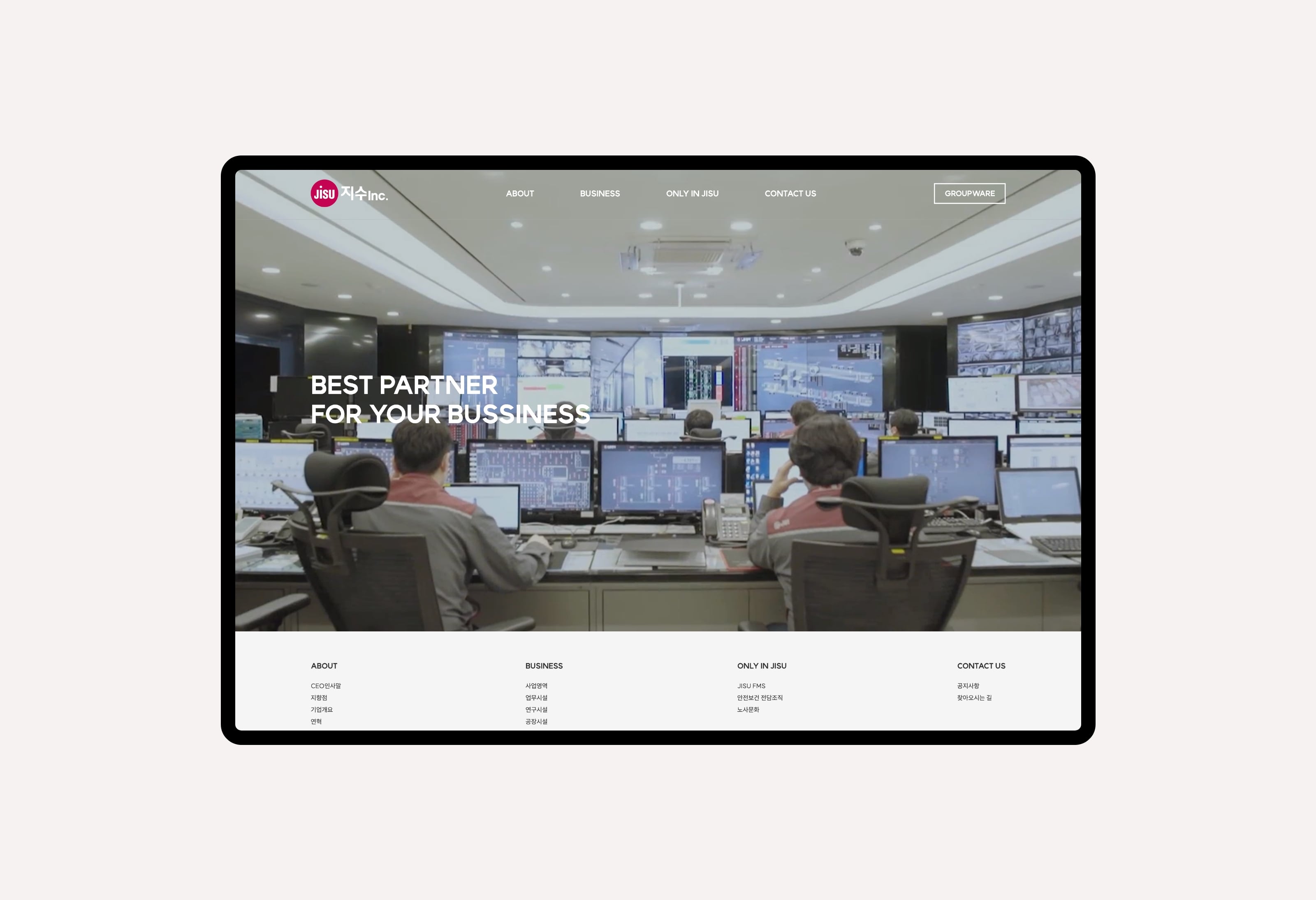 지수아이앤씨는 건물종합관리 서비스 전문회사로서 디비스에서는 브랜드 아이덴티티 확립을 위한 컬러와 웹사이트 가이드 등을 제안하였고 디자인을 해치지 않는 높은 가독성을 강조하여 스타일링 되었습니다. 공장시설, 업무시설, 연구시설 등 대형 사업장에 대한 관리 노하우를 중점으로 보여주어 고객에게 신뢰받는 모습으로 표현되었습니다.